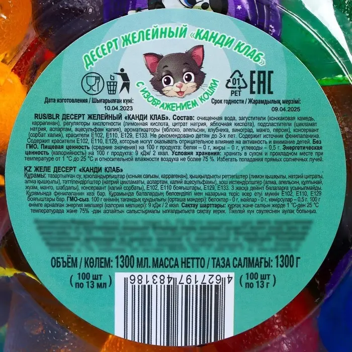 Десерт желейный "Кошка" ассорти, 13 г