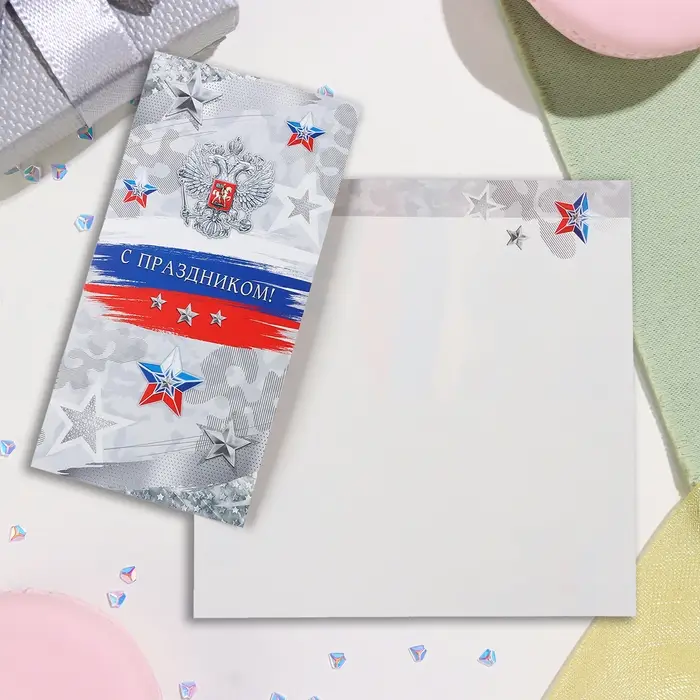 Открытка-евро "С Праздником!" тиснение, конгрев, серый фон, 11х21,5 см