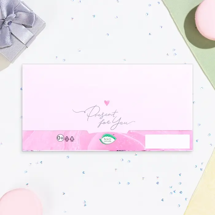 Конверт для денег "С Днём Рождения!" чашка сладостей, тиснение, 16,5 х 8,5 см