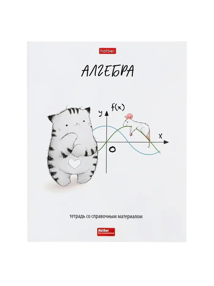 Тетрадь 48 листов в клетку «Приключения кота Пирожка» Алгебра, белые листы