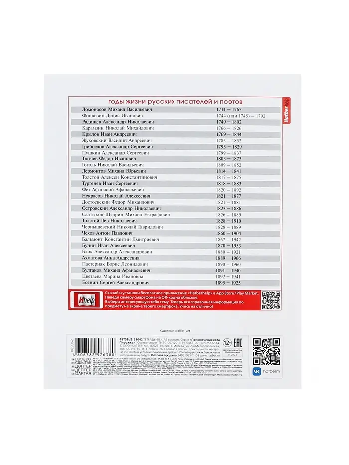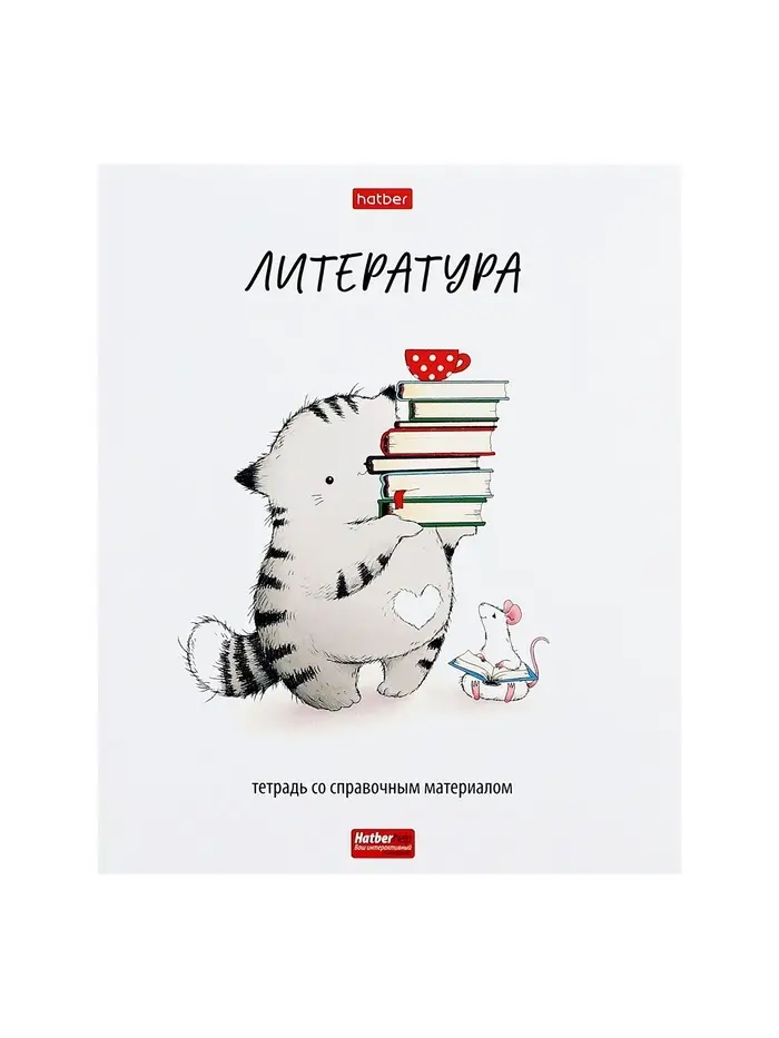 Тетрадь 48 листов в линию «Приключения кота Пирожка» ЛИТЕРАТУРА, обложка мелованная бумага, с интерактивным справочником, блок офсет