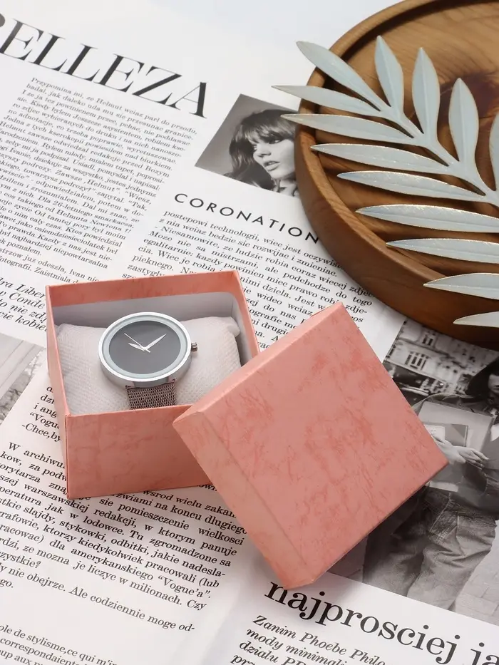 Коробка для часов, цвет розовая, вставка белая 9х8,5х5