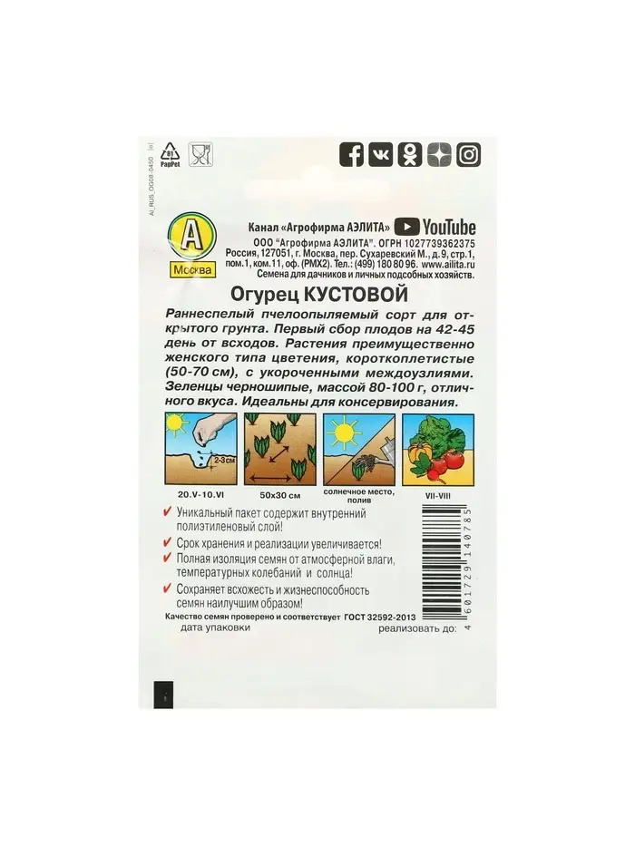 Семена огурца "Великолепная пятерка", F1,набор 5 шт