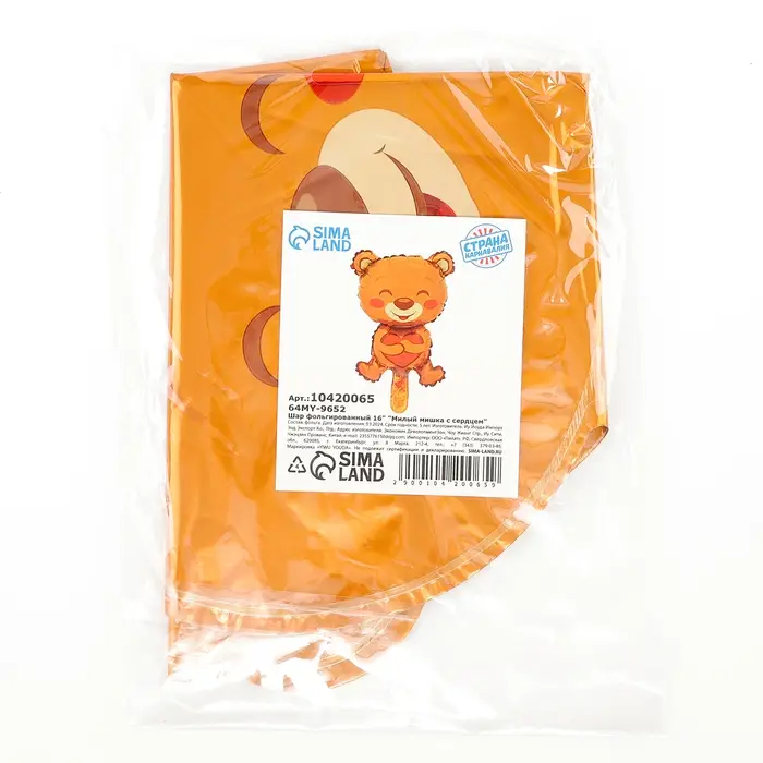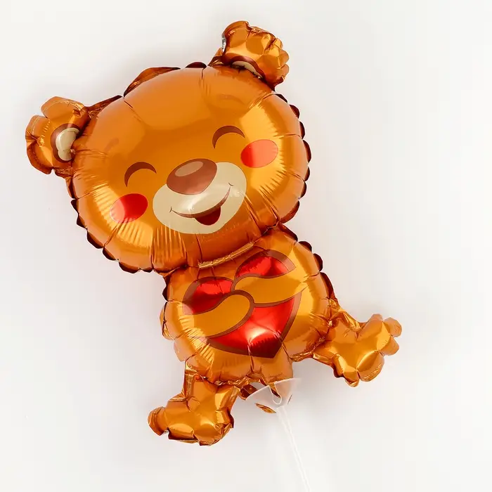 Воздушный шар фольгированный 16" «Мишка с сердцем», фигура, для палочки