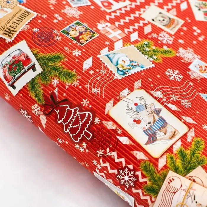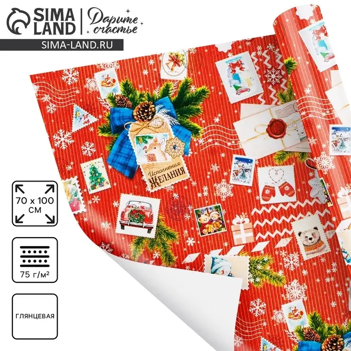 Упаковочная бумага на новый год «Почтовые открытки», 70 х 100 см, глянцевая