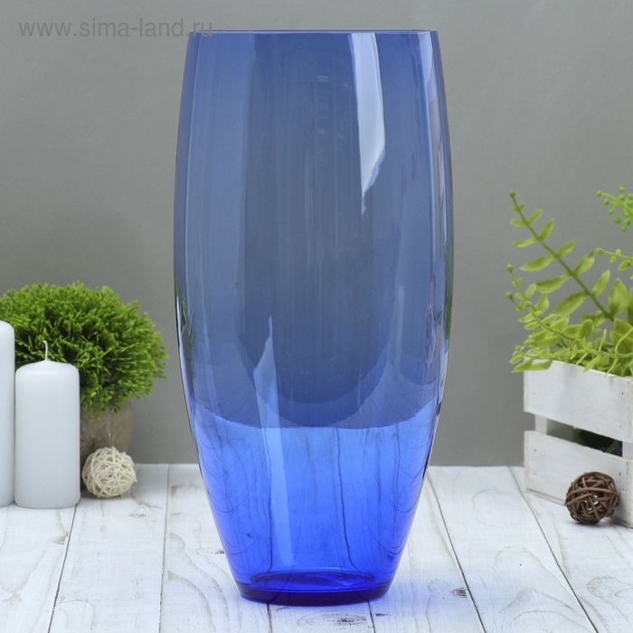 Ваза "Бочка" d 130*h 300 мм. из синего стекла (без декора)