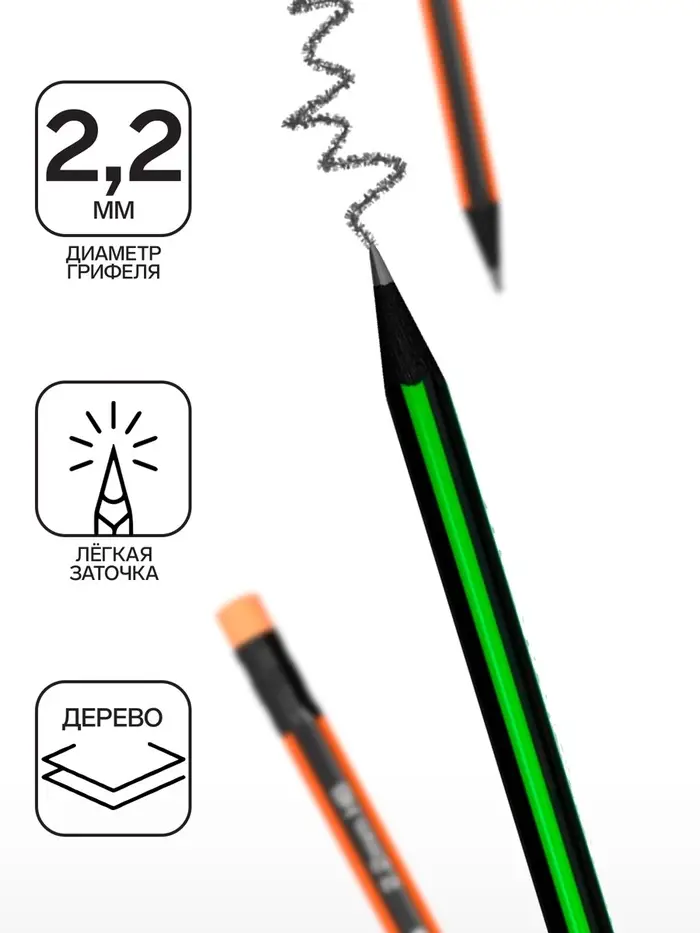 - Мягкая древесина и идеальная центровка грифеля гарантируют легкую заточку с экономным расходом карандаша.