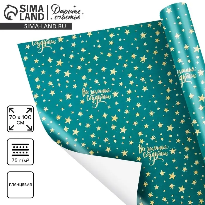 Упаковочная бумага на новый год «Звёзды», 70 х 100 см, глянцевая