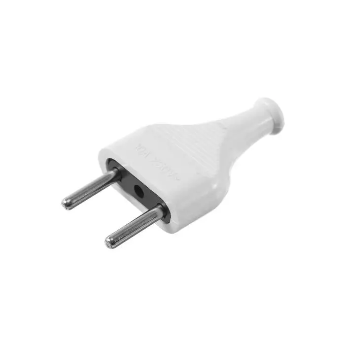 Вилка без заземляющего элемента предназначена для присоединения к сети бытовых электроприборов.