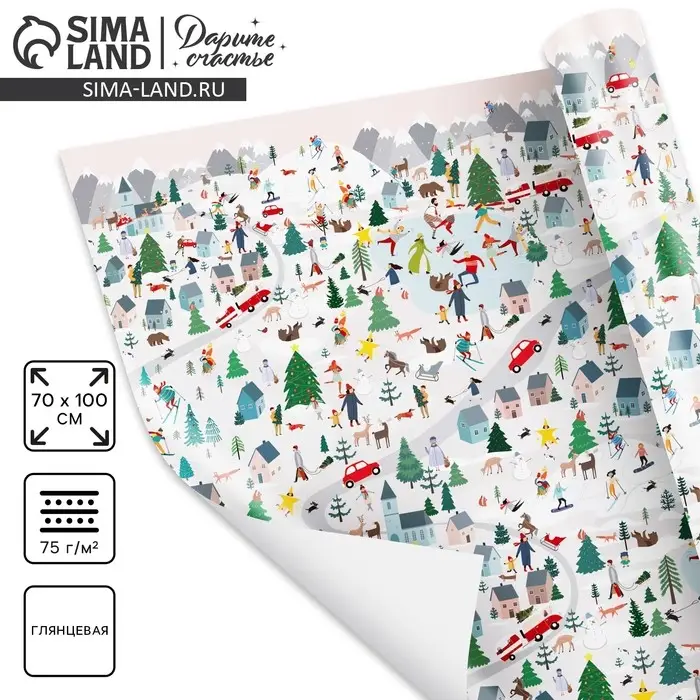 Упаковочная бумага на новый год «Зимний город», 70 х 100 см, глянцевая