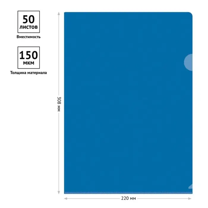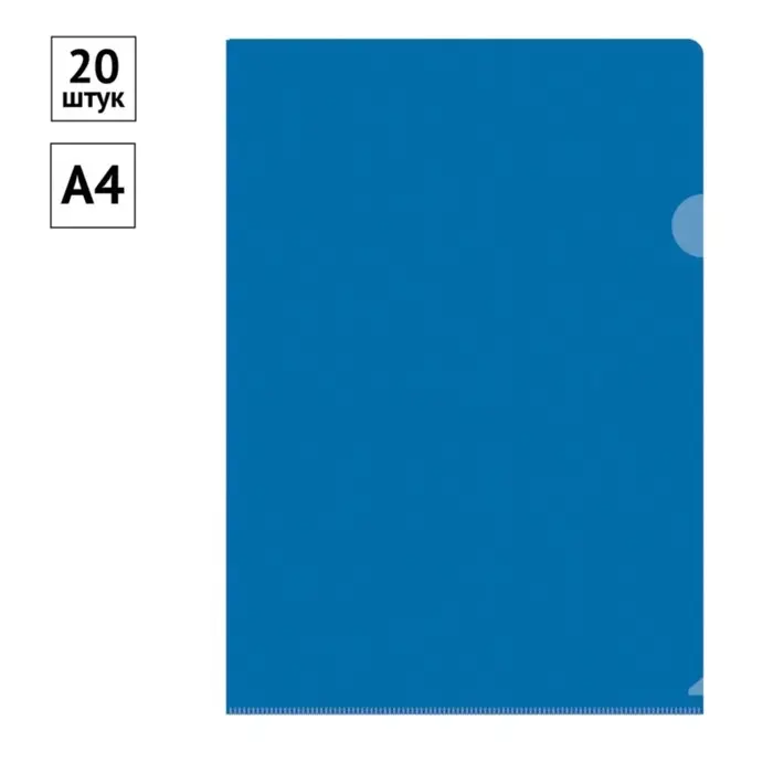 Папка-уголок А4, 150 мкм, Calligrata, прозрачная, синяя