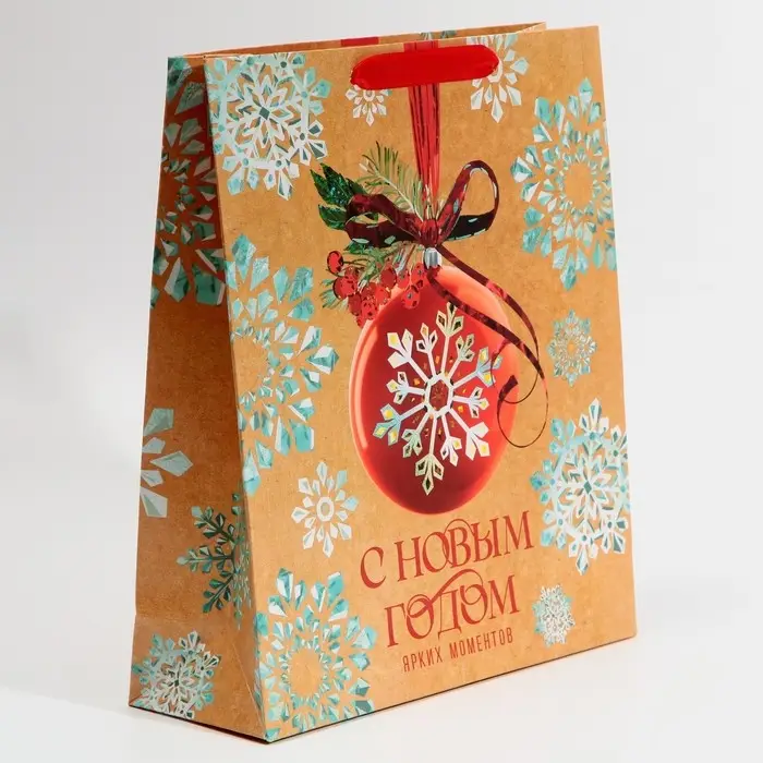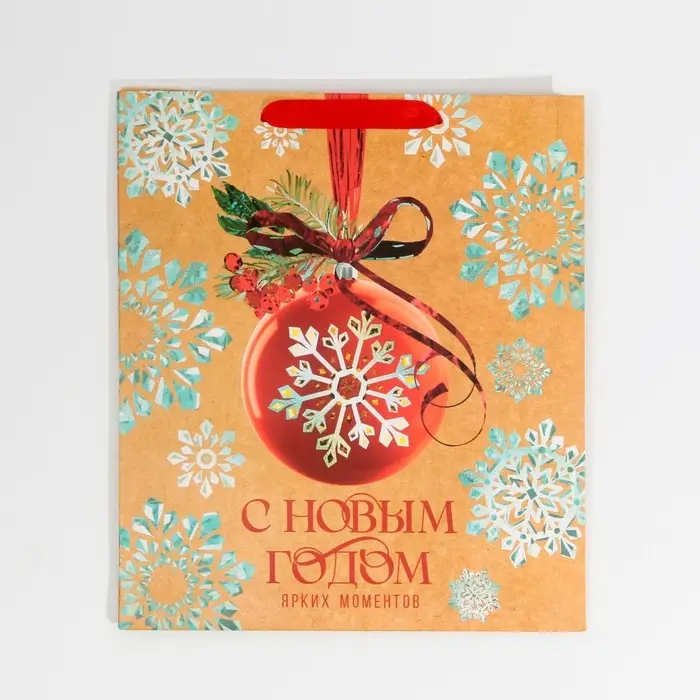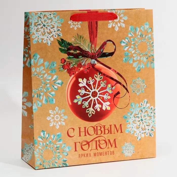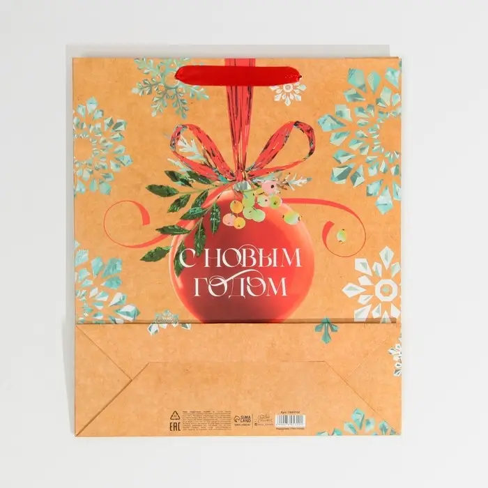 Пакет подарочный новогодний ламинированный «Венок», M 26 х 30 х 9 см