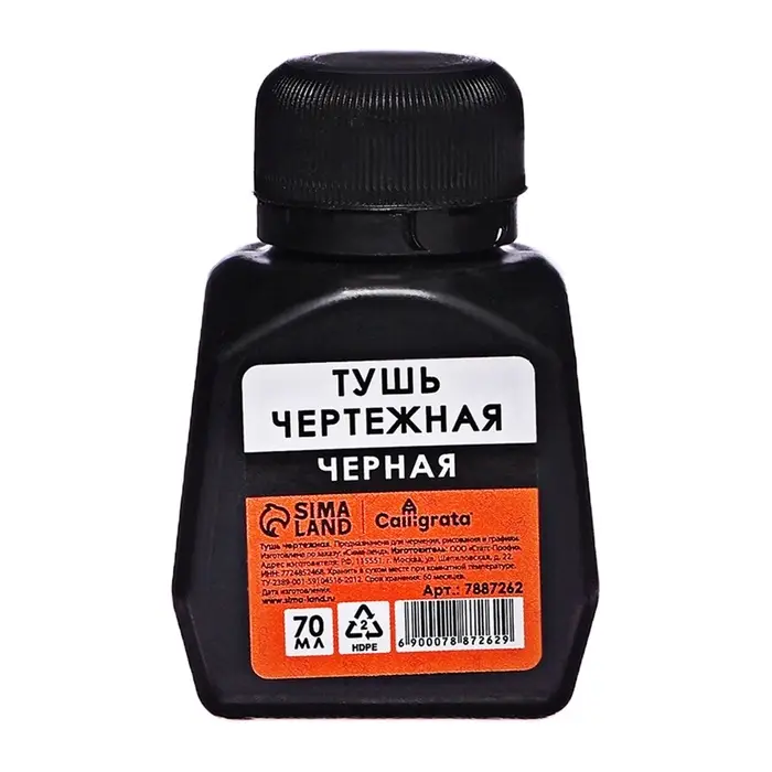 Тушь жидкая, чёрная, 70 мл «Гамма»