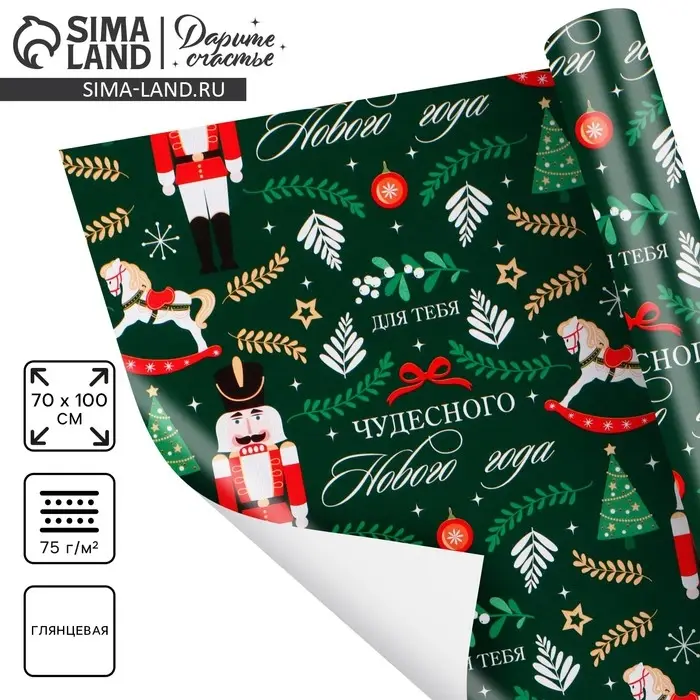 Упаковочная бумага на новый год «Щелкунчик», 70 х 100 см, глянцевая