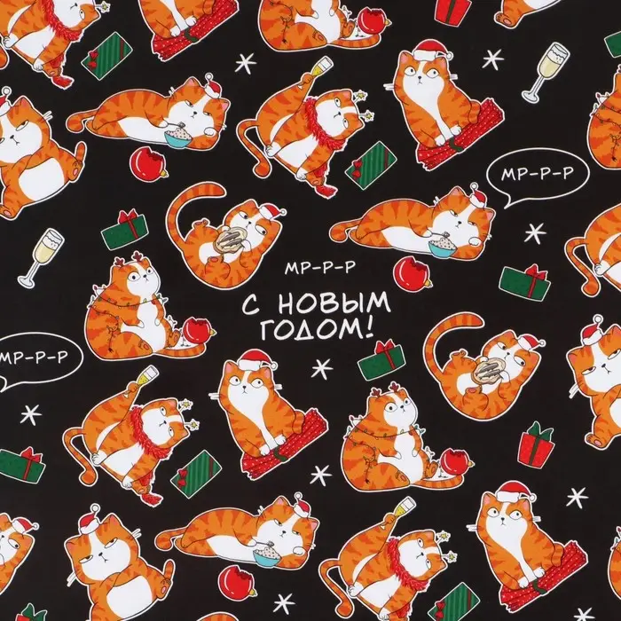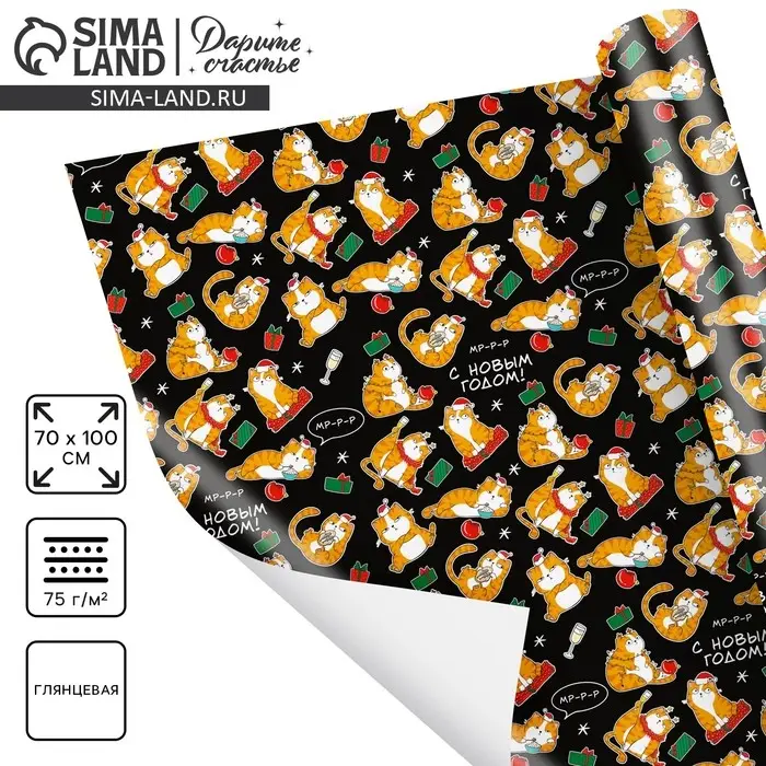 Упаковочная бумага на новый год «Коты новогодние», 70 х 100 см, глянцевая