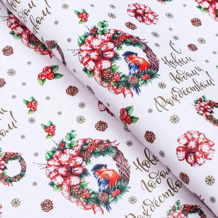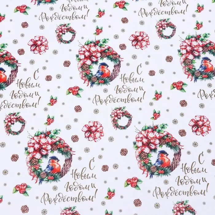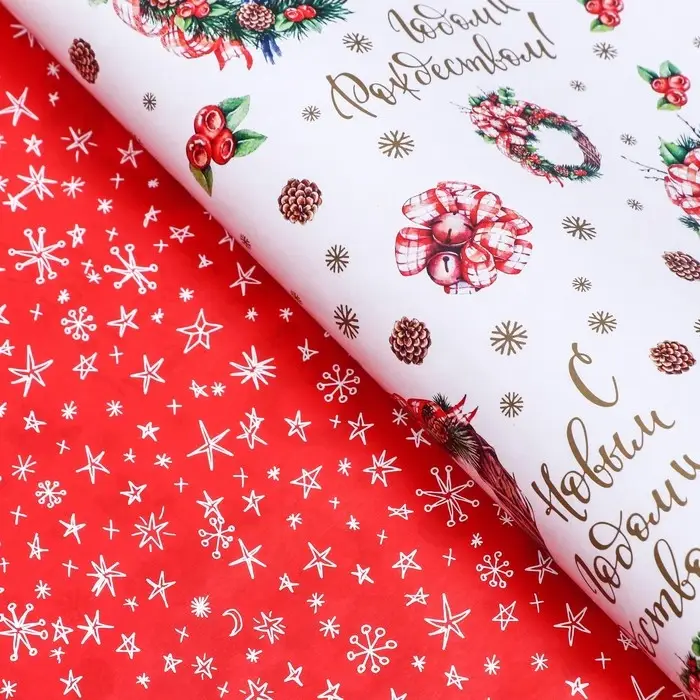 Бумага упаковочная новогодняя глянцевая двусторонняя «Венки », 70×100 см