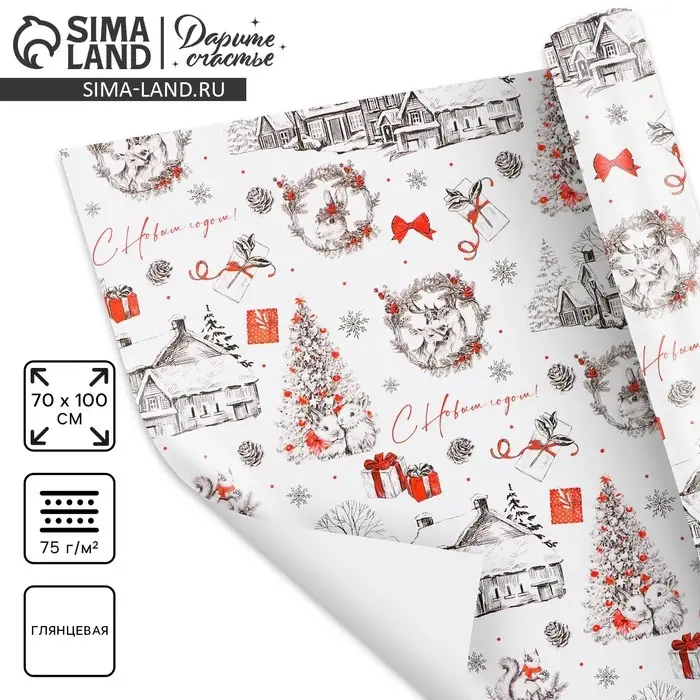 Упаковочная бумага на новый год «Новогодний шик», 70 х 100 см, глянцевая