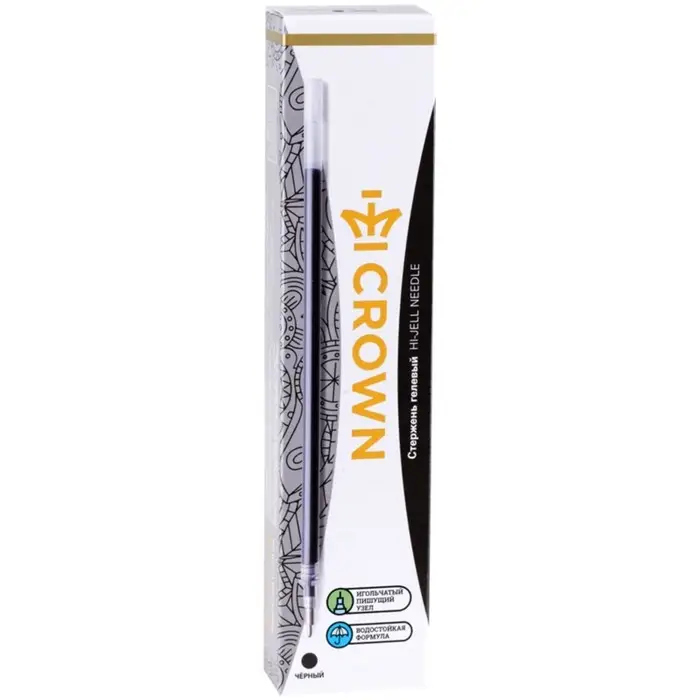 Стержень гелевый 0,7 мм, Crown "Hi-Jell Needle" черный, 138мм, игольчатый