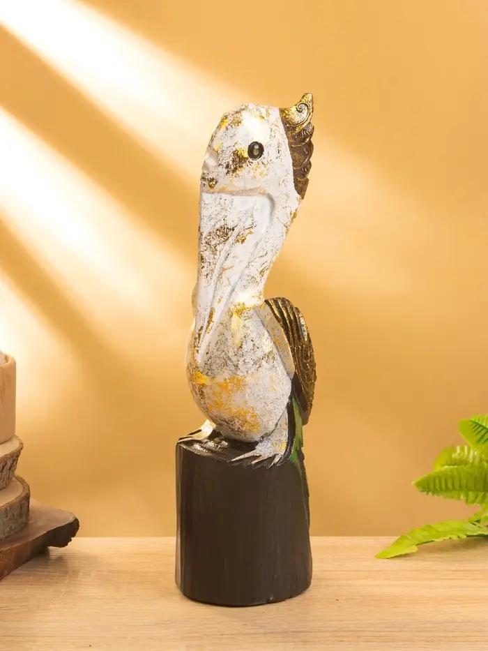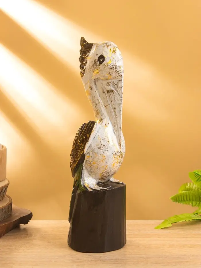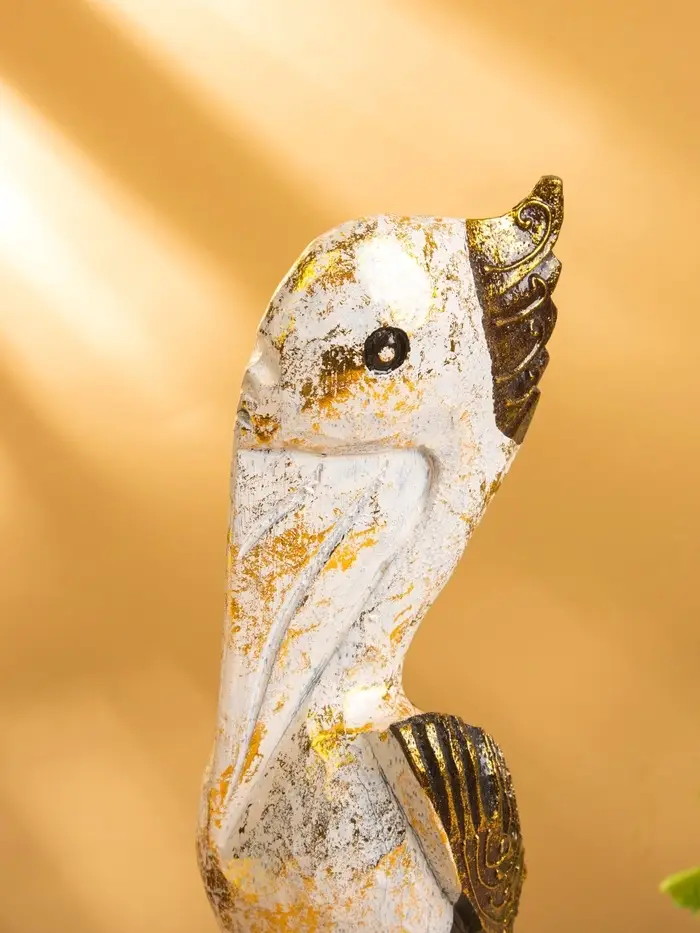 Сувенир интерьерный "Пеликан" 10х10х33 см, дерево, цв. белый с золотом