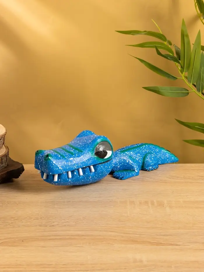 Шкатулка "Крокодильчик" 25х8х7 см, дерево, цв. синий