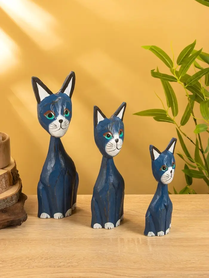 Сувенир интерьерный "Кошачья семья" (набор 3 шт: 30,25 и 20 см) дерево, цв. синий