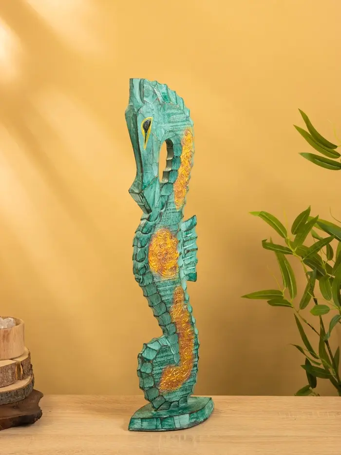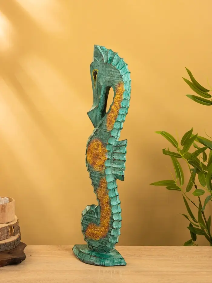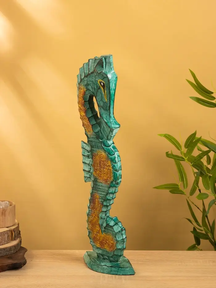 Сувенир интерьерный "Морской конь" 18х9х60 см, дерево, цв. зелёный