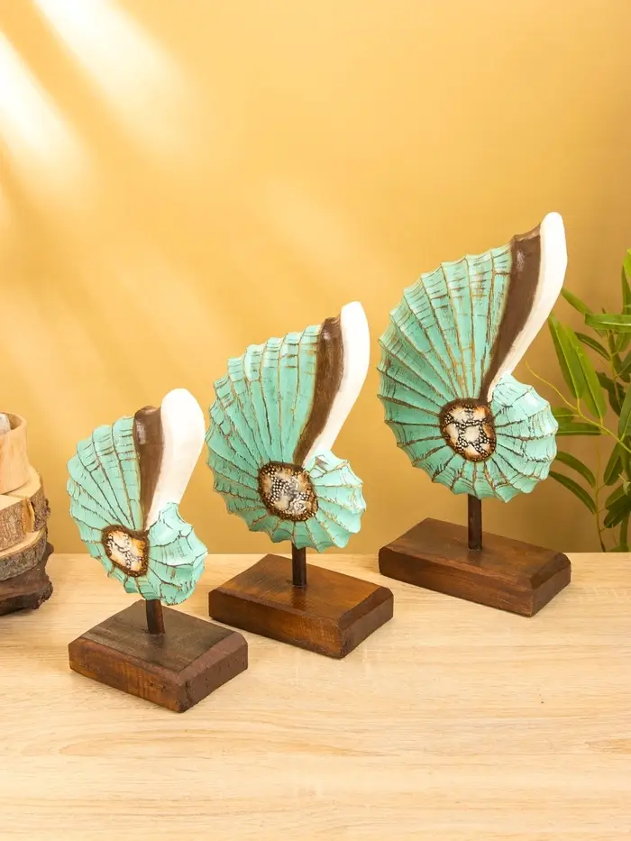 Набор сувенирный "Раковины" дерево (h - 35.30 и 25 см), цв. бирюзовый