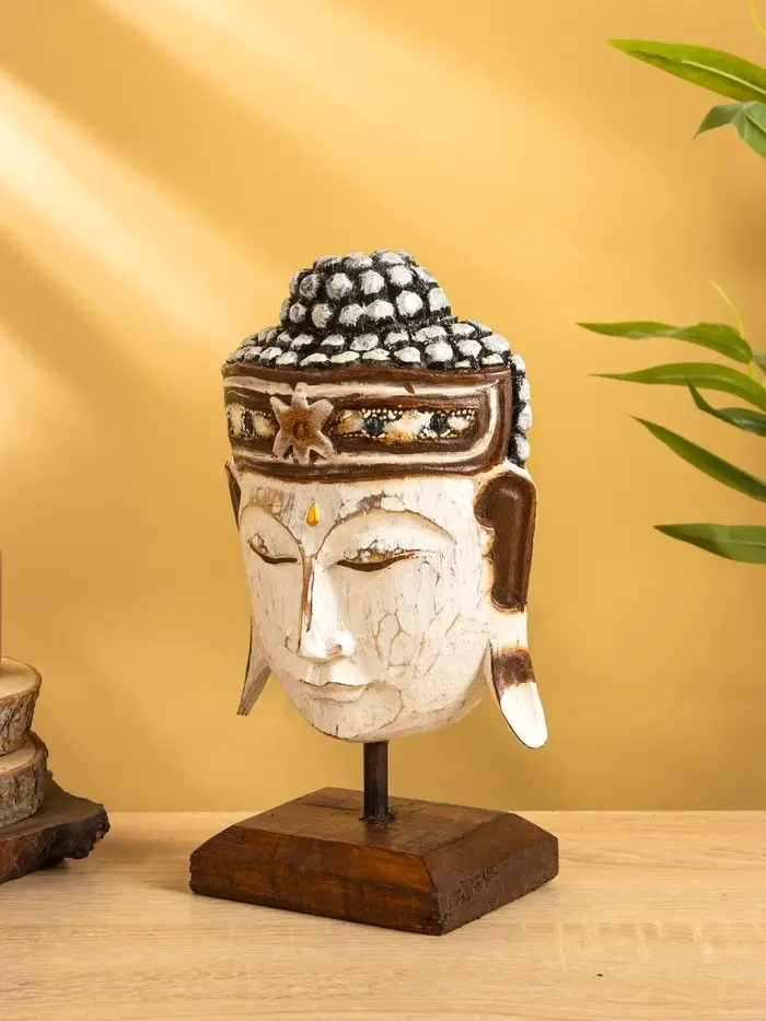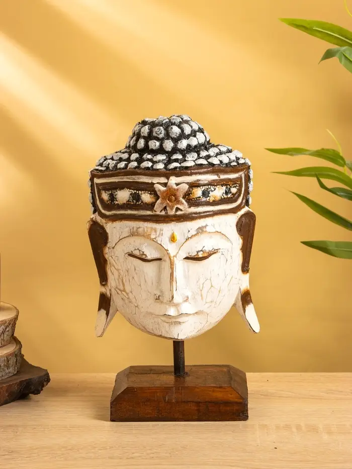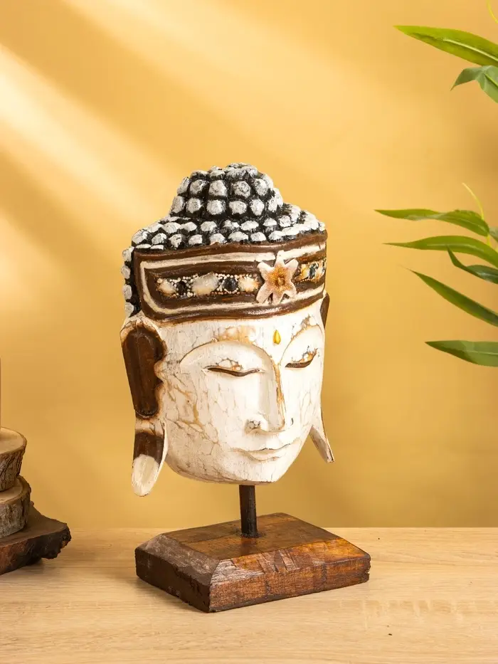 Сувенир «Голова Будды», 10×16×27 см, дерево, белый