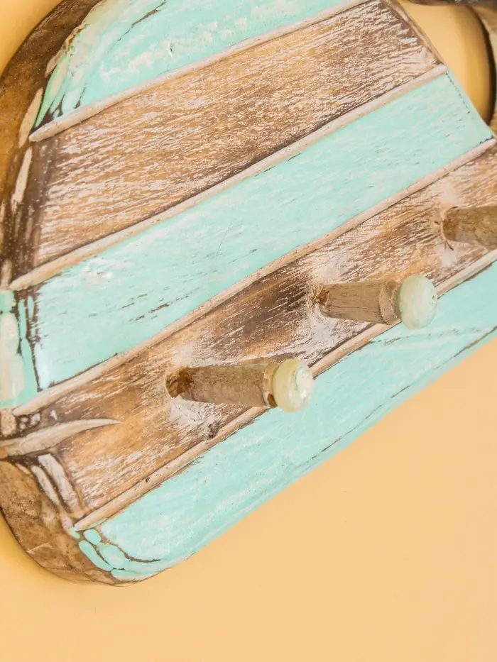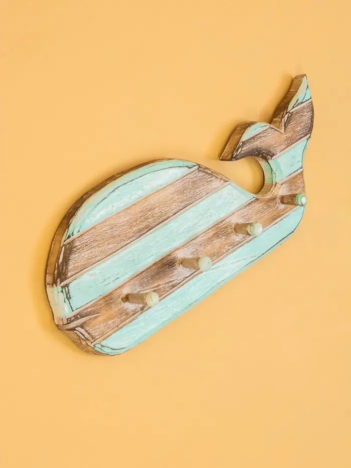 Вешалка «Кит», с 3 крючками, 44×6×18 см, дерево, бирюзовая