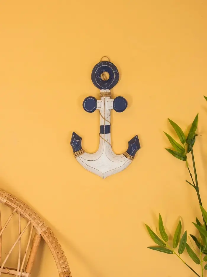 Декор интерьерный "Якорь" дерево 23х2х40 см, цв. бело-синий