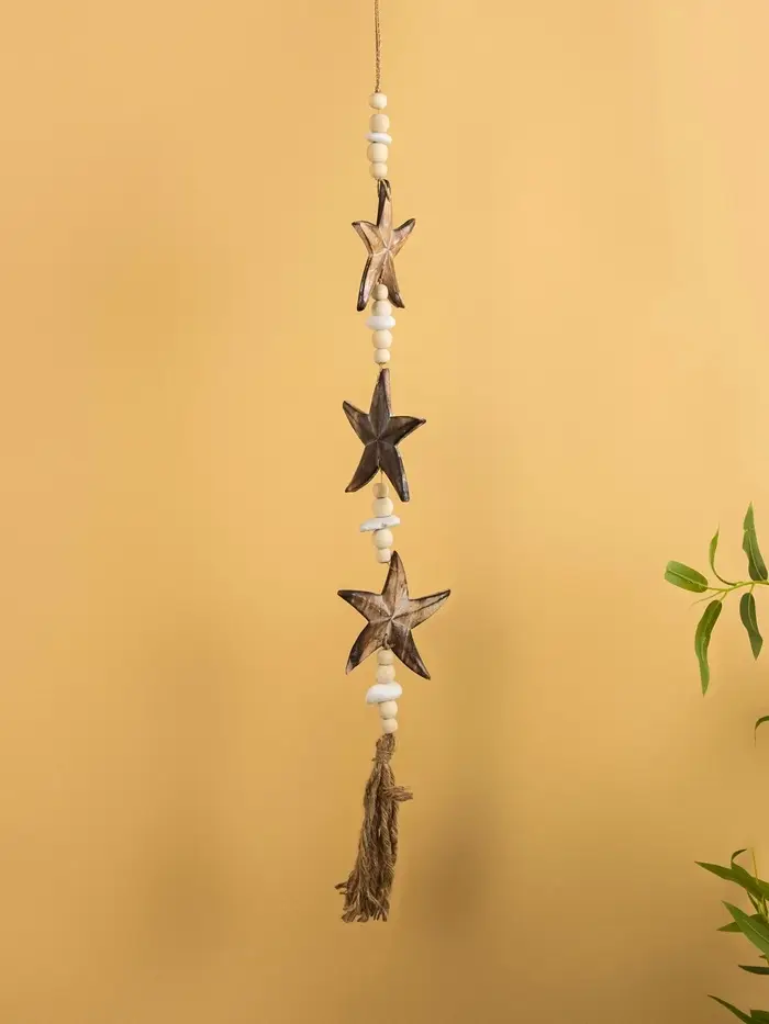 Подвеска декоративная «Звёздочки», 13×3×100 см, дерево, камень, коричневая