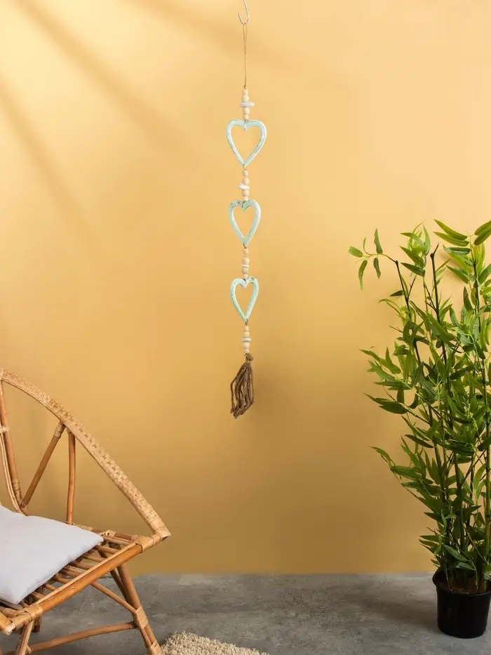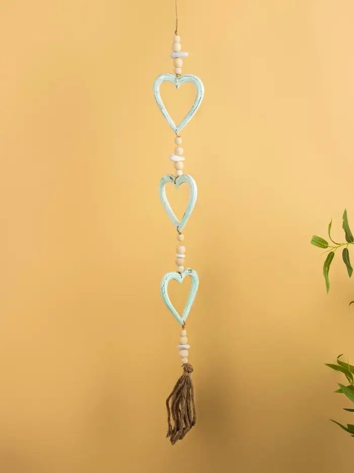 Подвеска декоративная "Сердечки" дерево, камень 13х3х100 см
