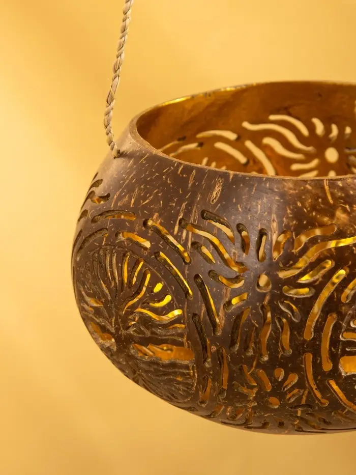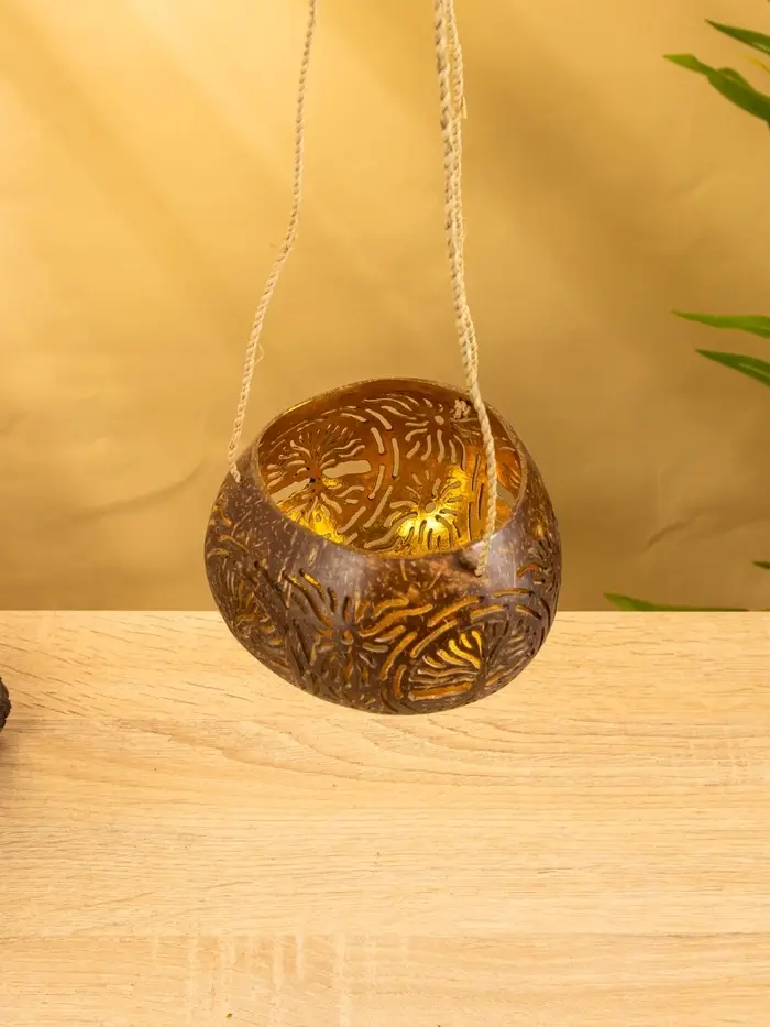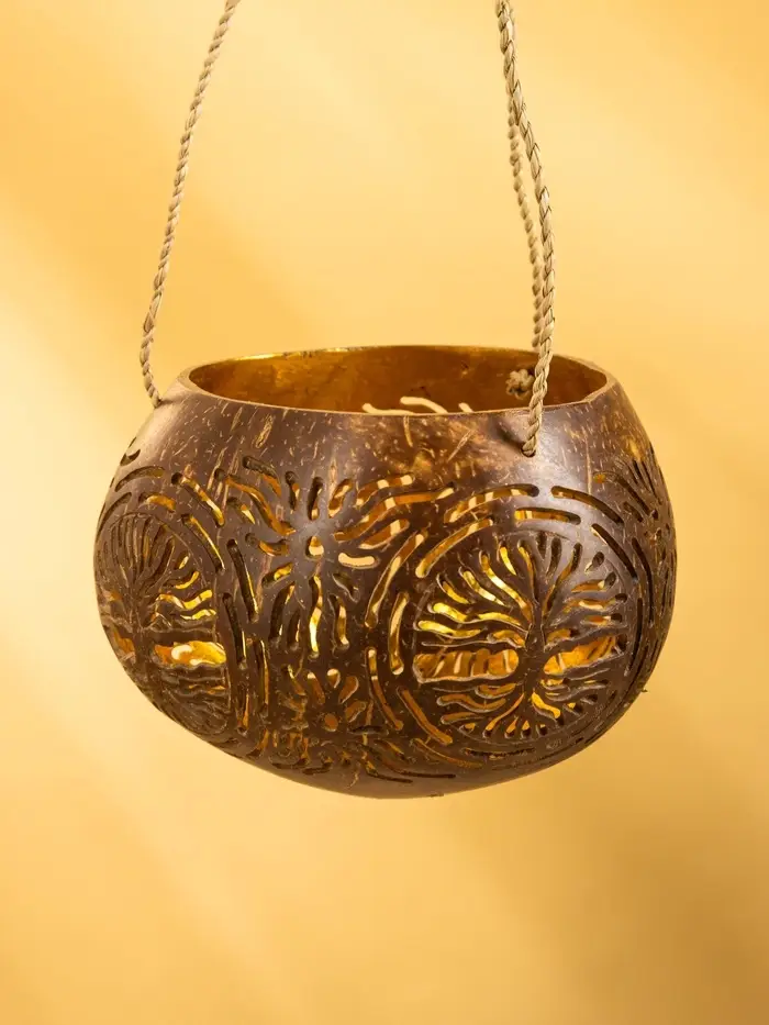 Подсвечник подвесной из кокоса, 9-12 см, коричневый
