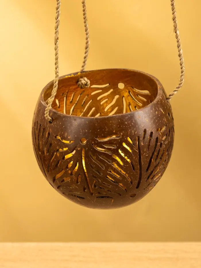 Подсвечник подвесной из кокоса, 9-12 см, коричневый