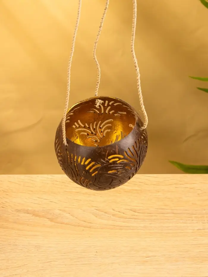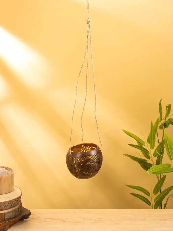 Подсвечник подвесной из кокоса, 9-12 см, коричневый