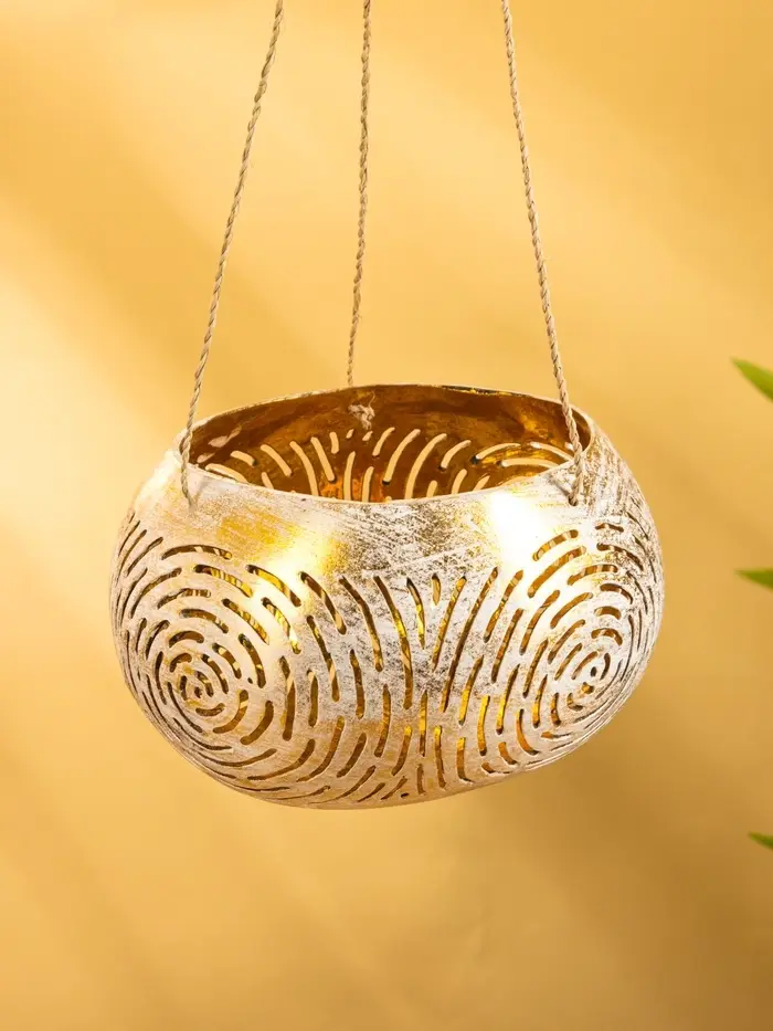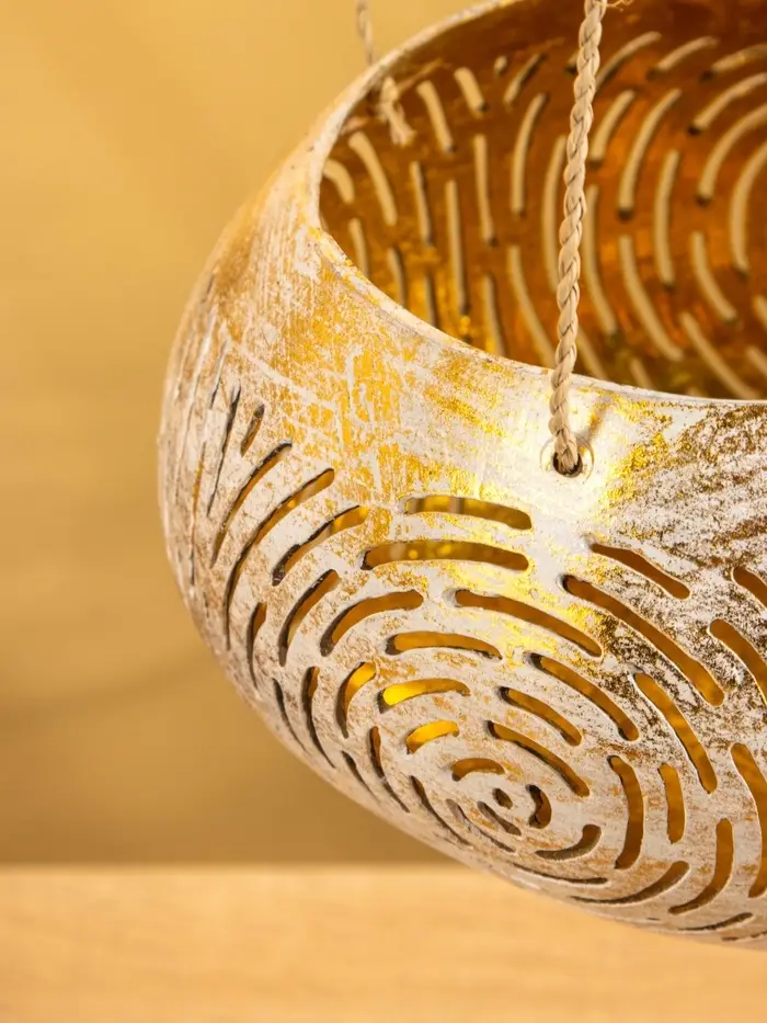 Подсвечник подвесной из кокоса, 13-16 см, бело-золотой