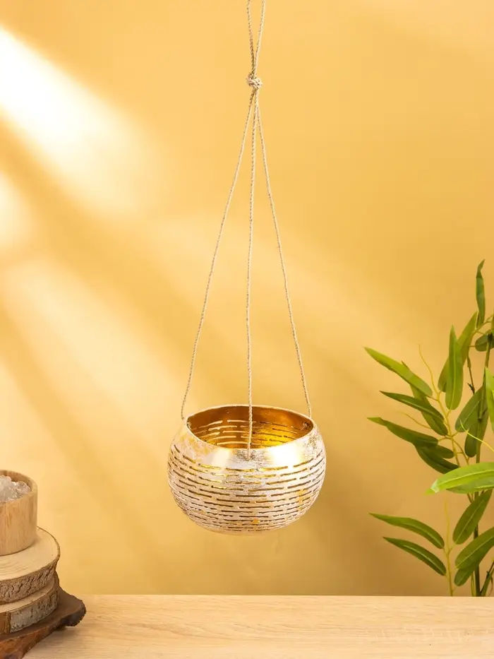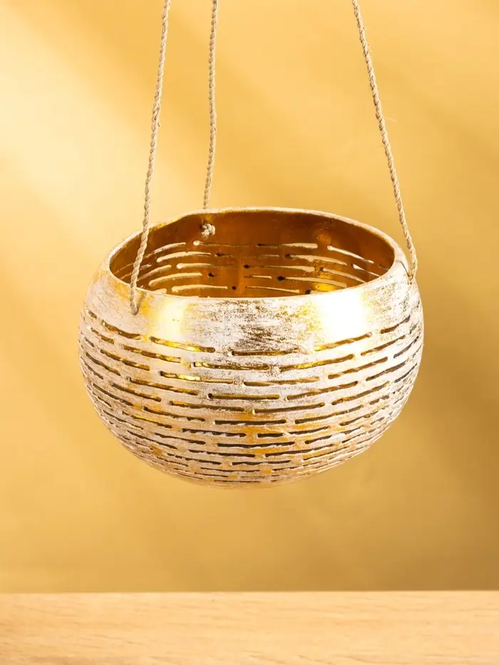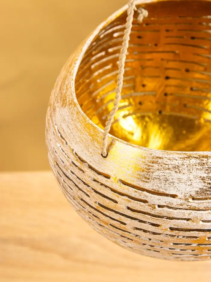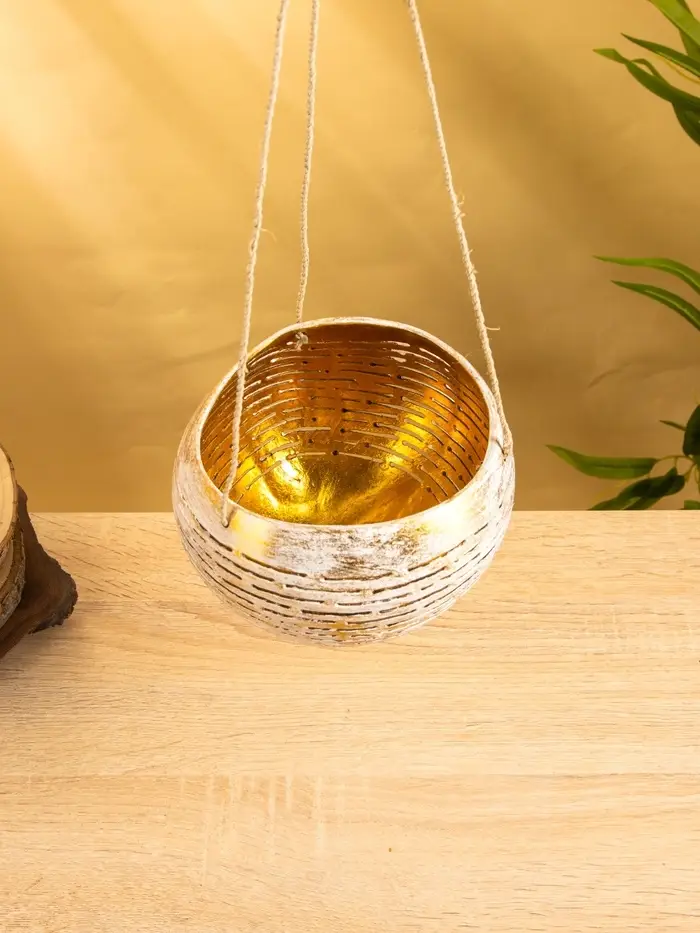 Подсвечник подвесной из кокоса, 12-15 см, золотисто-белый