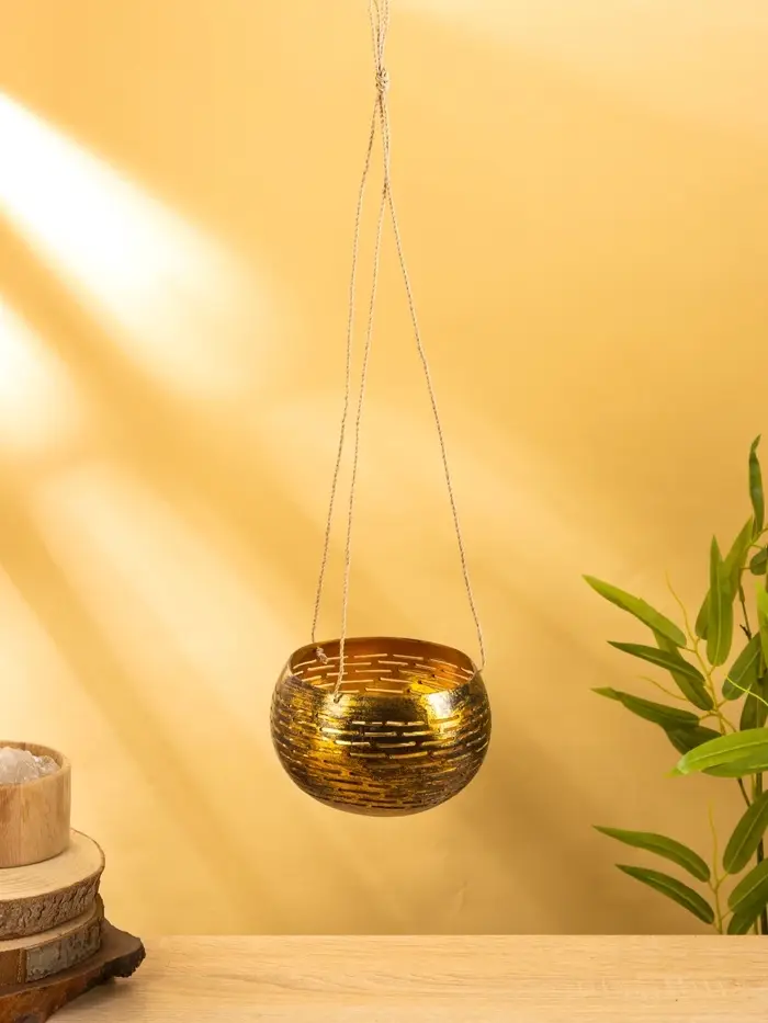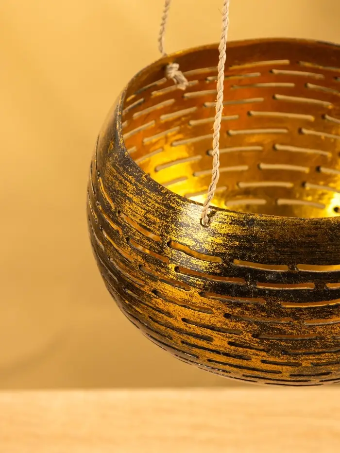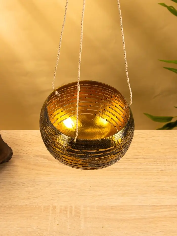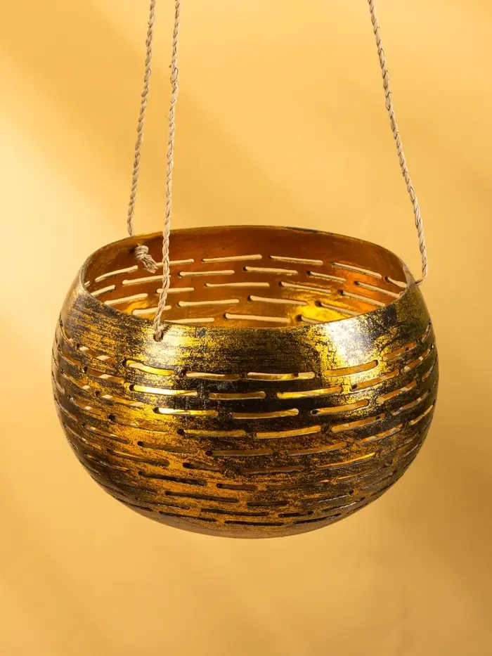 Подсвечник подвесной из кокоса, 14х14х10 см, цв. чёрно-золотой