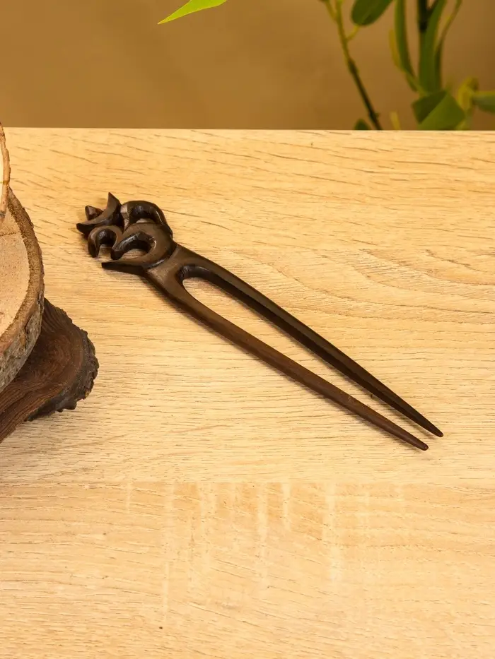 Заколка для волос фигурная, дерево Соно, ракушка, 17х3 см, цв. тёмно-коричневый