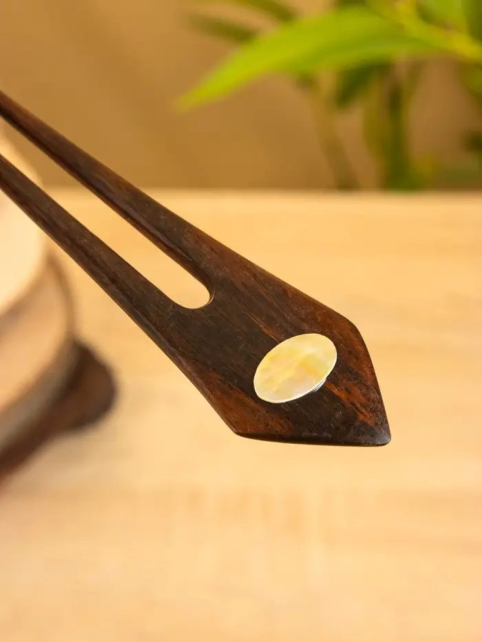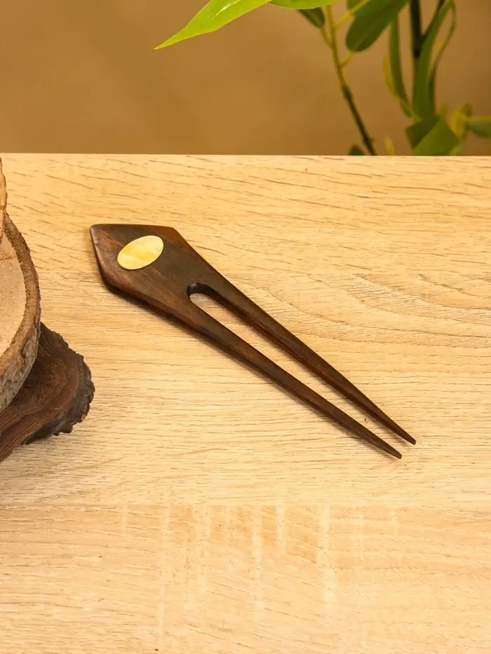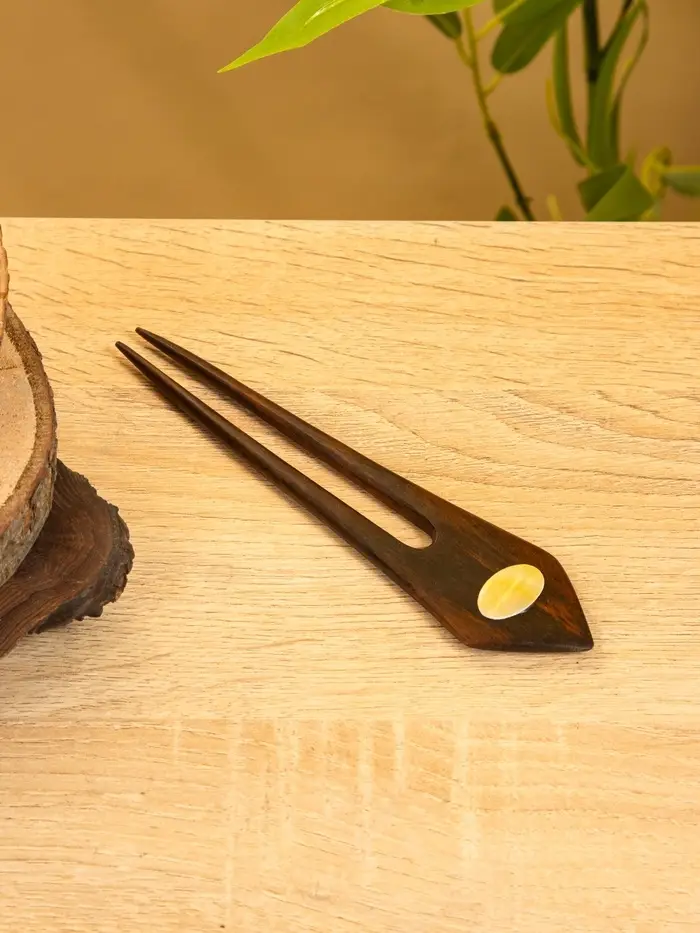 Заколка для волос фигурная, дерево Соно, ракушка, 17х4 см, цв. тёмно-коричневый