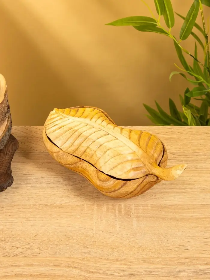 Конфетница "Лист" дерево Джампинис 26х13х8 см