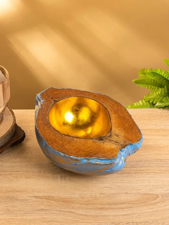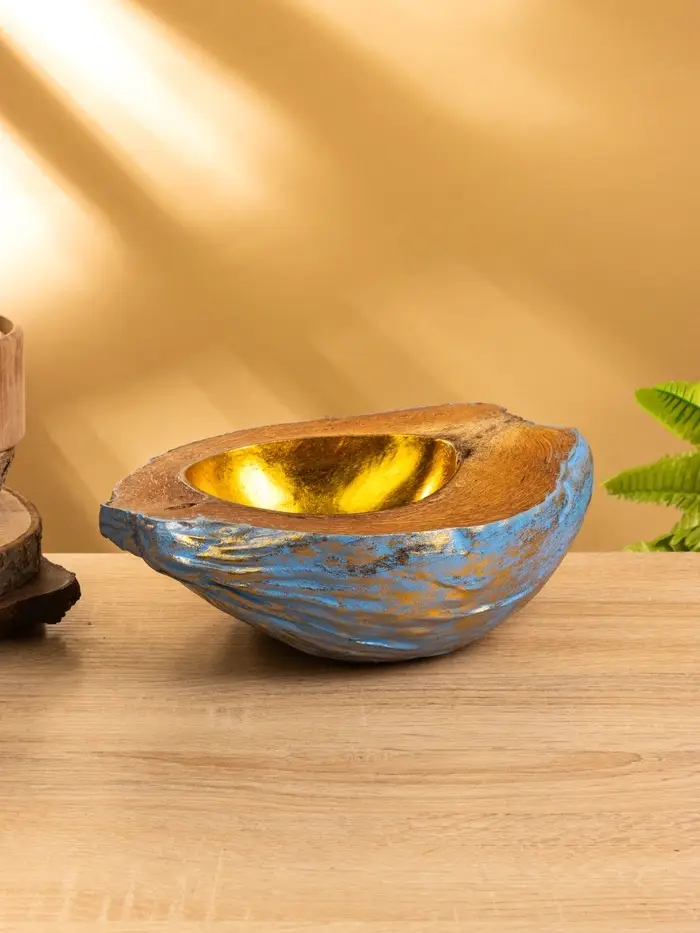 Чаша из кокоса, 22,5х25х10 см, сине-золотой