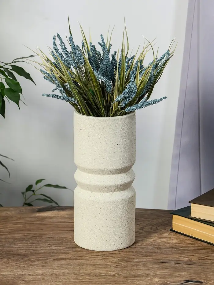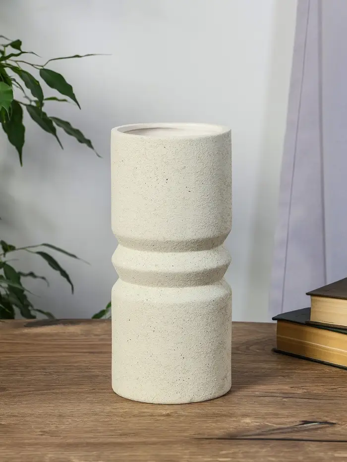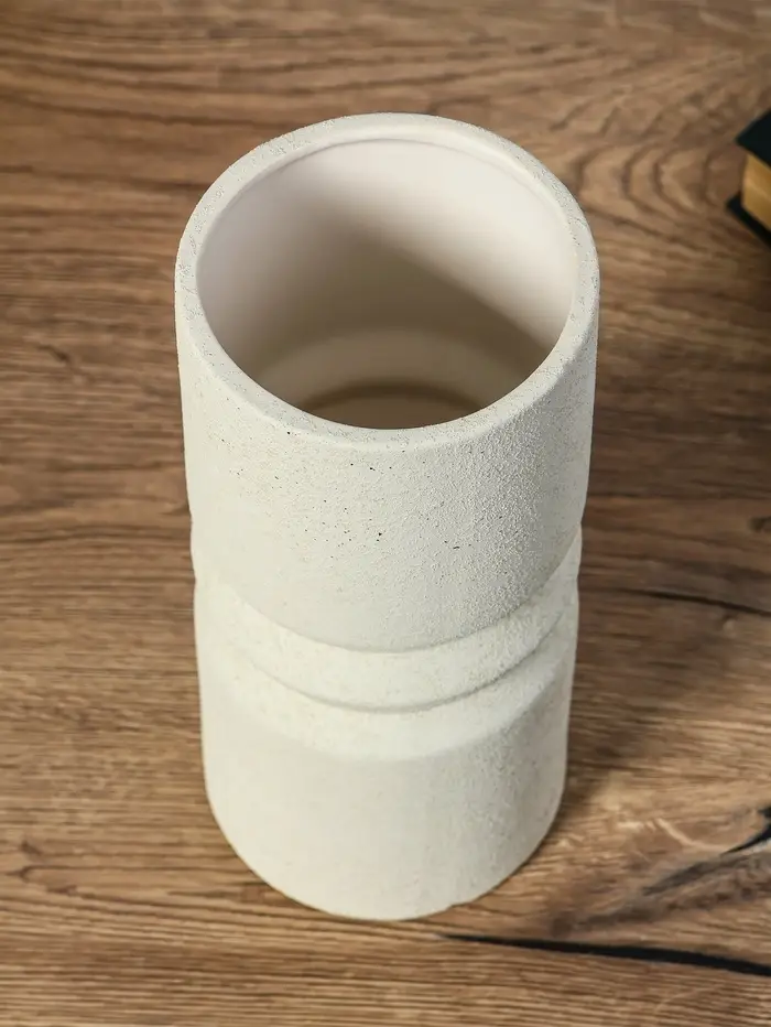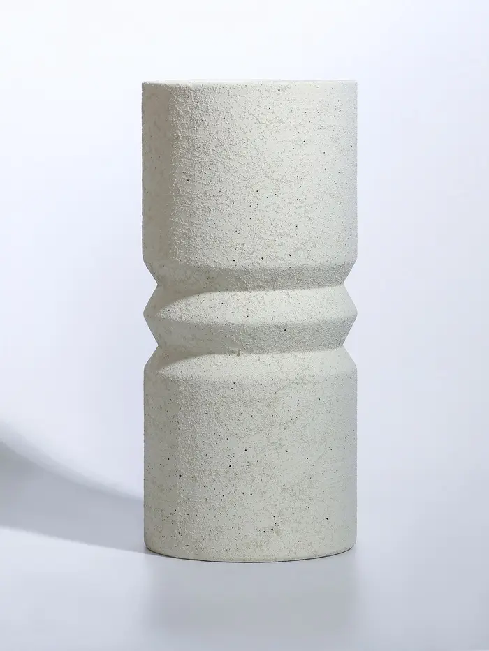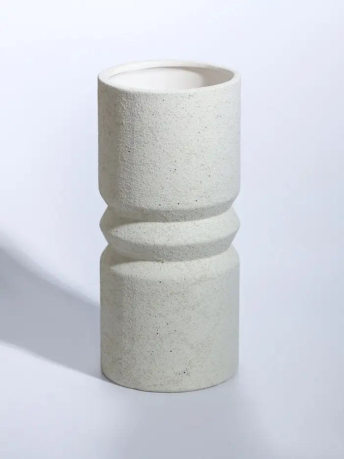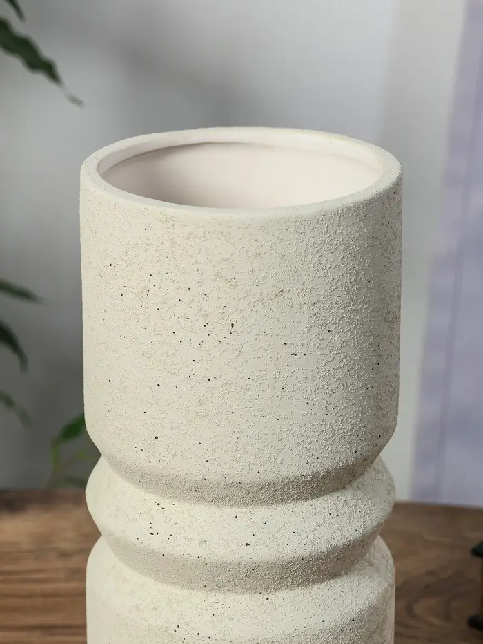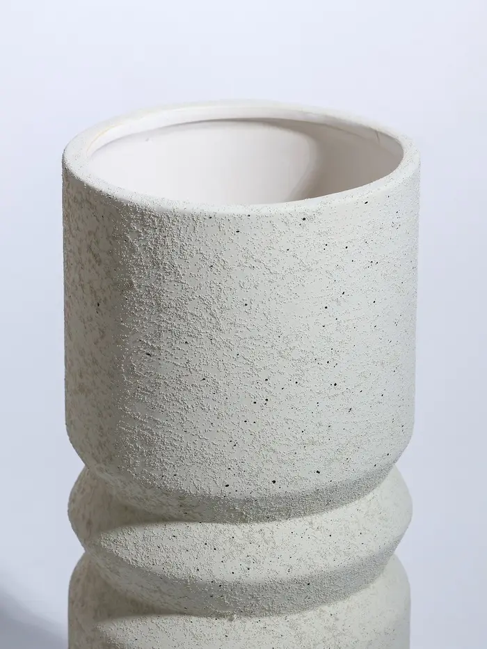 Ваза керамика настольная "Бэрри" прямая кольца, h=24,5 d=11 см, белый