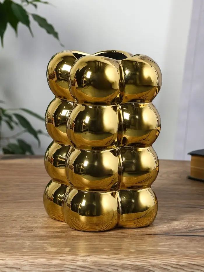 Ваза керамика настольная "Дайзи" шарики, h=20х11, d=7 см, золото