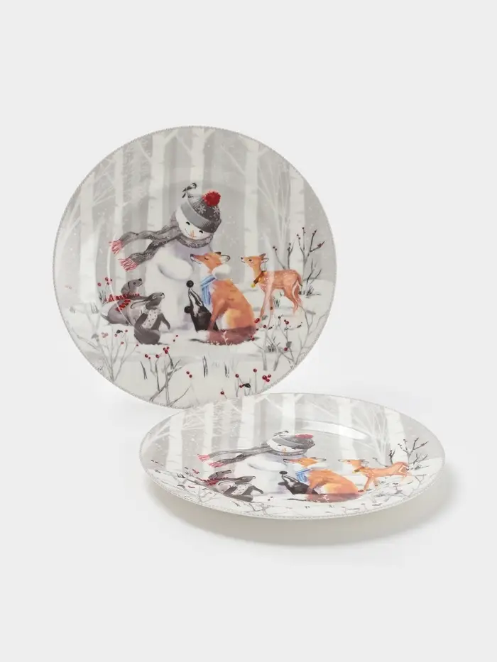 Набор тарелок новогодних «Снежные забавы», 2 шт., d=25.5 см, керамика, подарочная упаковка, белый