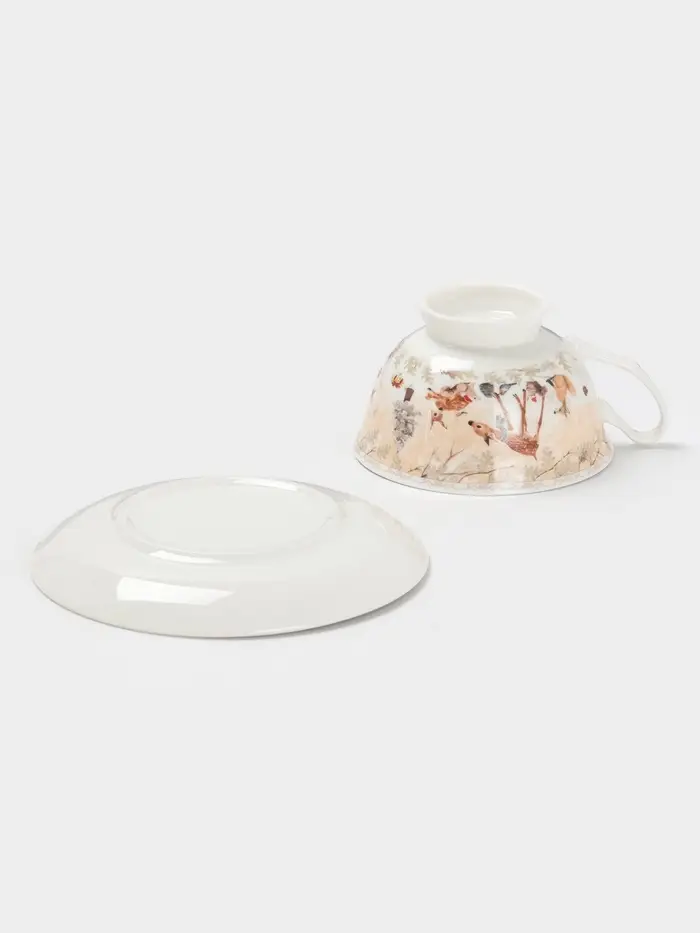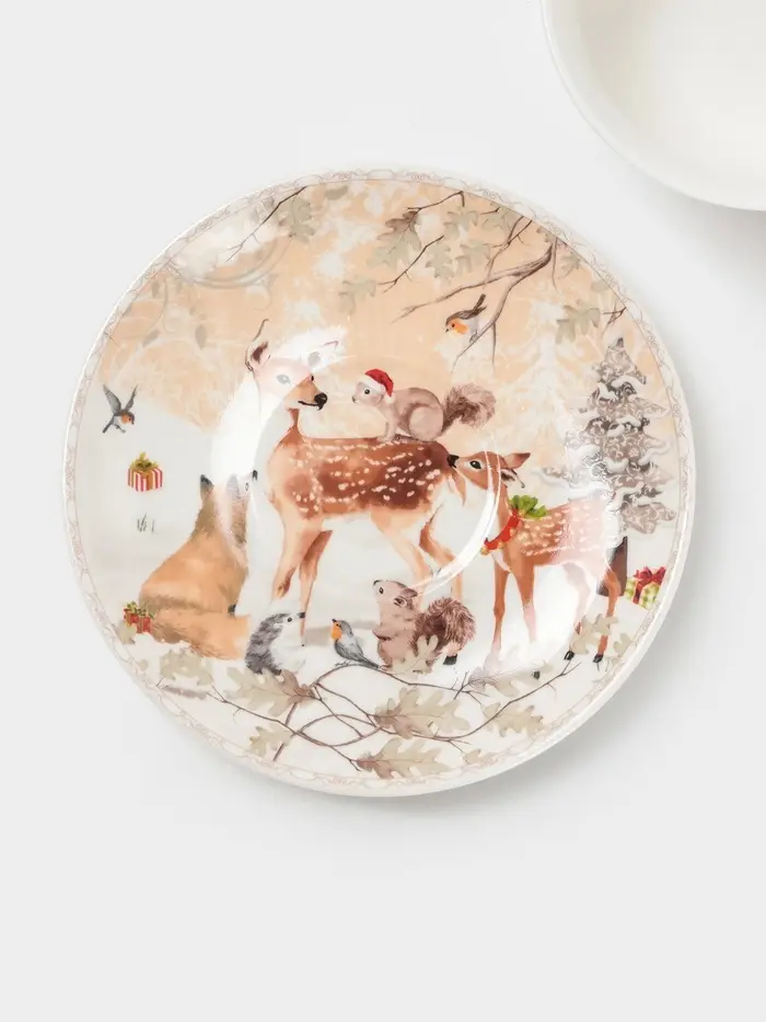 Чайная пара новогодняя «Лесное чудо», 2 предмета: чашка 180 мл, блюдце d=15 см, керамика, подарочная упаковка, бежевая