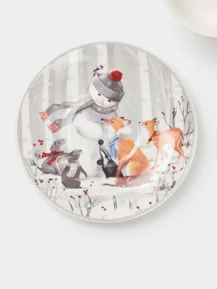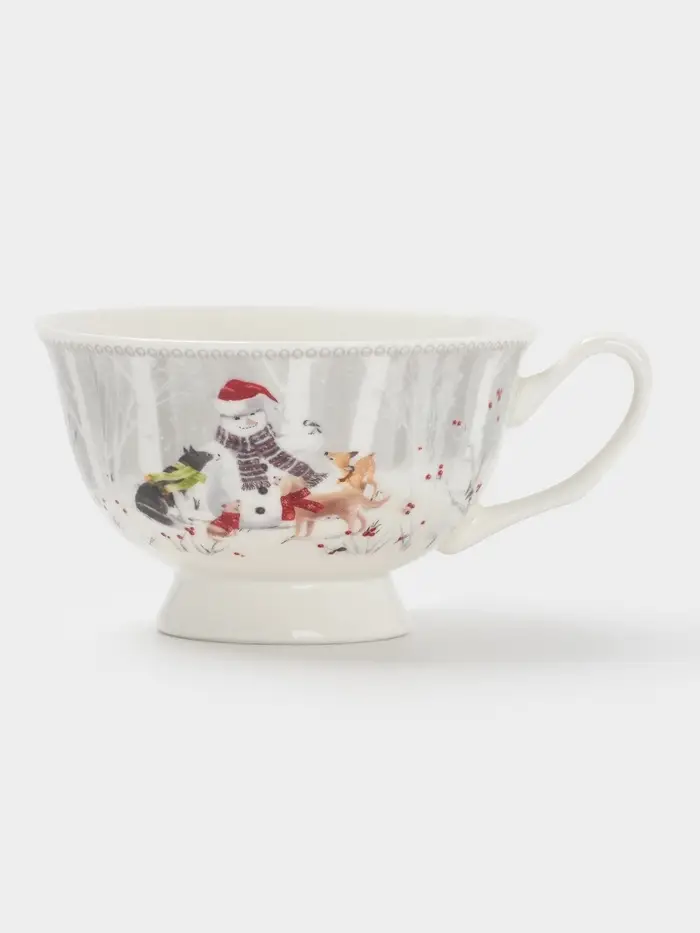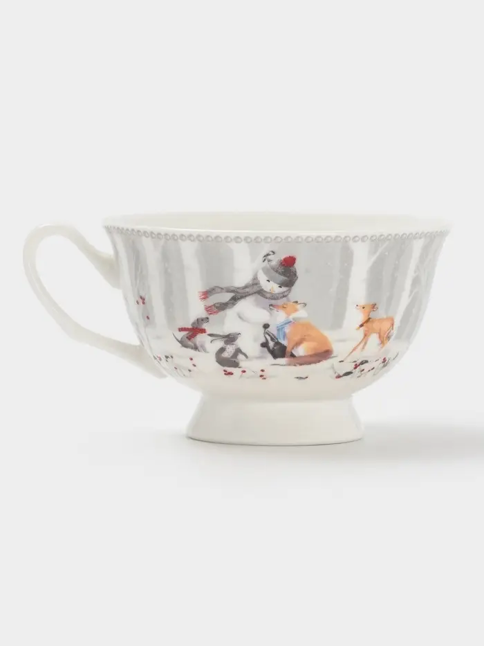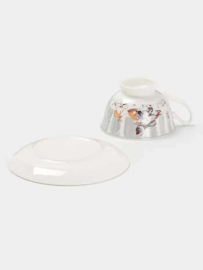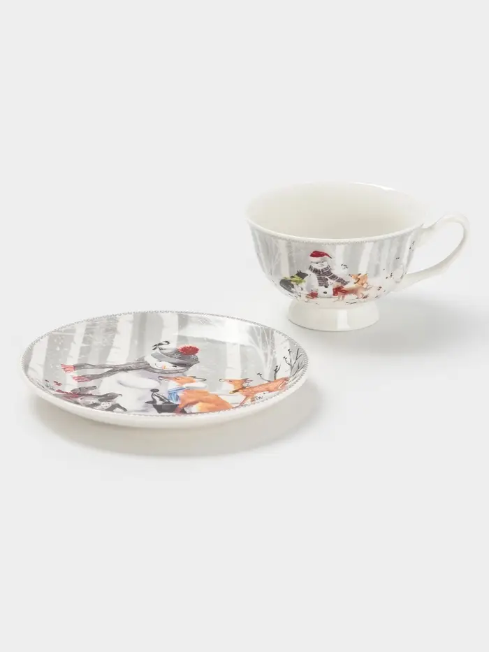 Чайная пара новогодняя «Снежные забавы», 2 предмета: чашка 180 мл, блюдце d=15 см, керамика, подарочная упаковка, белая