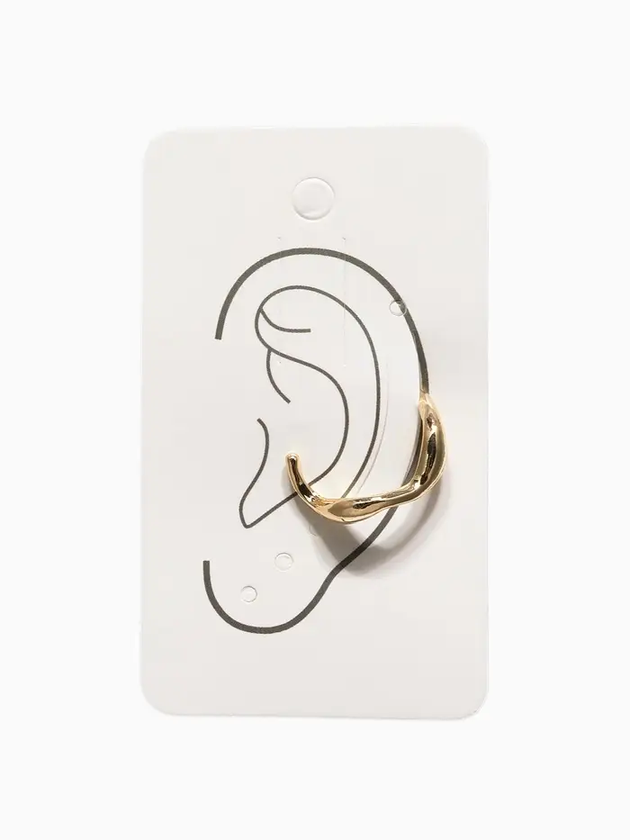 Серьга "Кафф" мятый металл, цвет золото