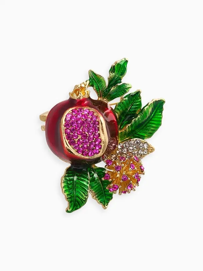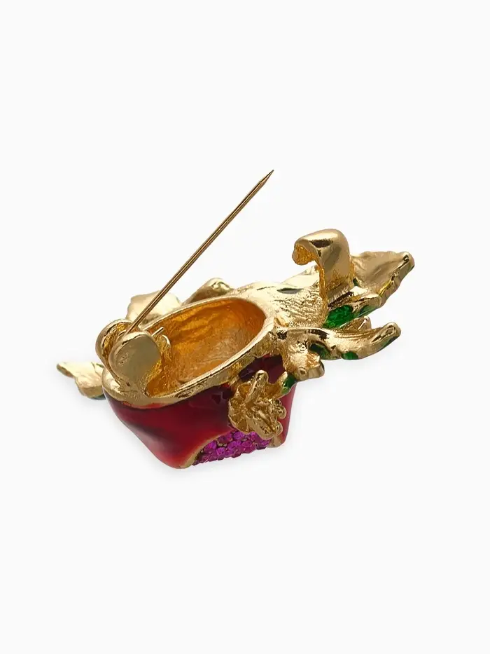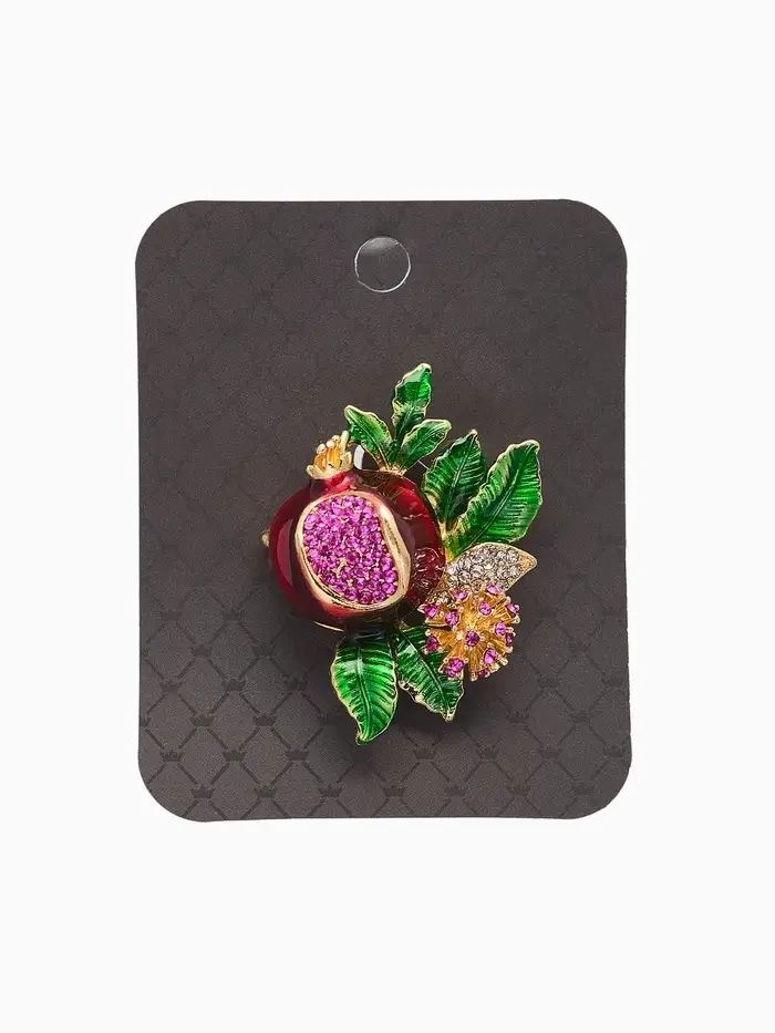 Брошь "Гранат" с цветком, со стразами, цветная в золоте