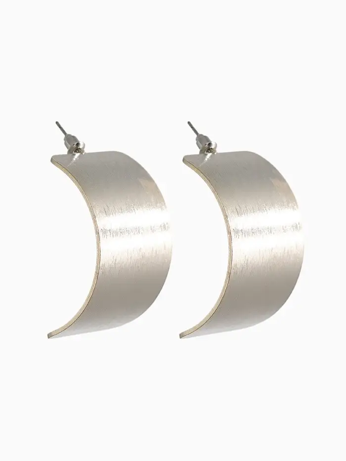 Серьги металл "Дуга" гладкая, тренд, цвет серебро